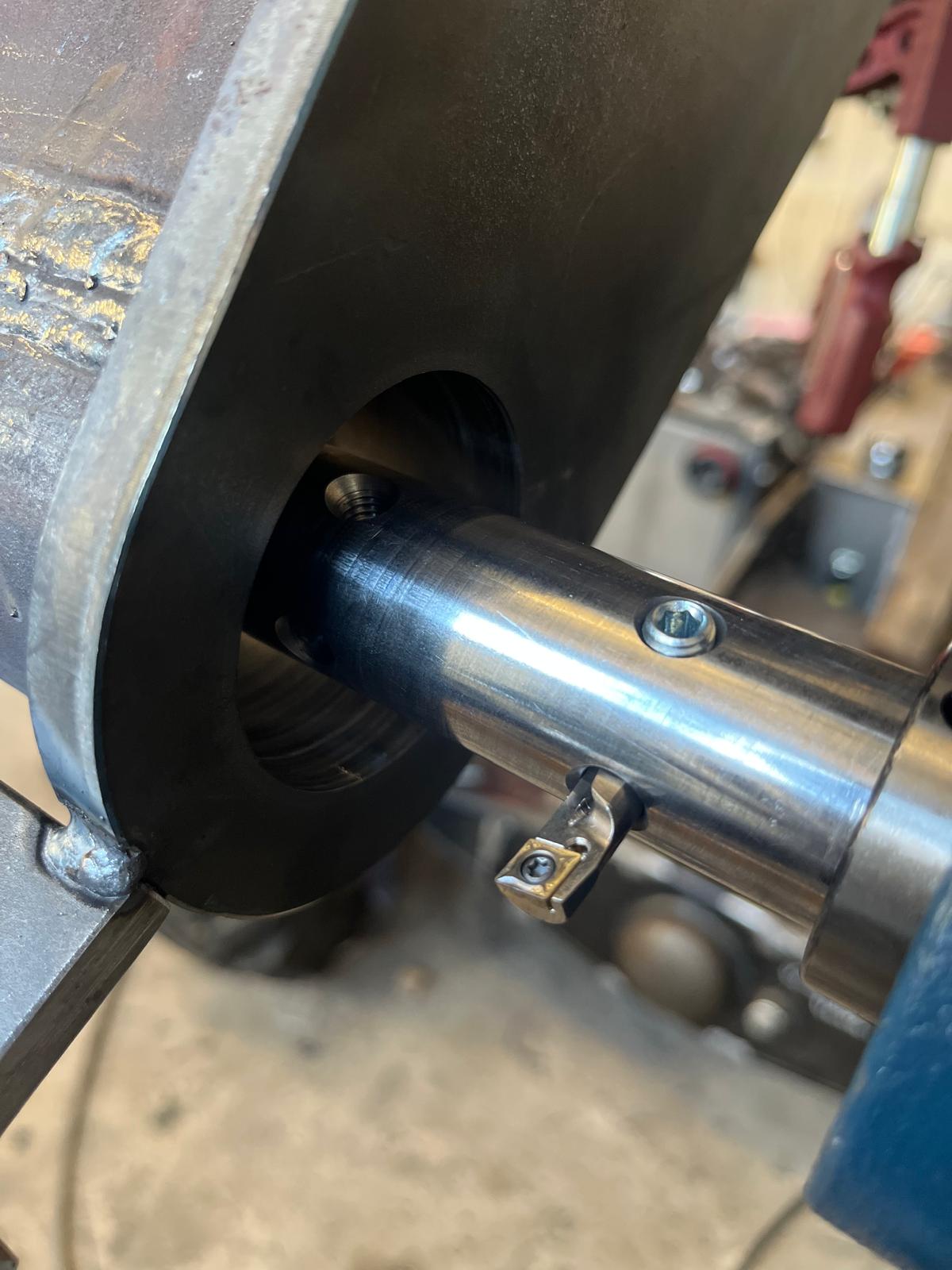Bei diesem Verfahren setzen wir eine Spindelvorrichtung am verschlissenen Maschinenteil an und stellen die Konzentrizität der Bohrung neu her.